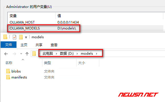 顺便回顾一下,如何移动大模型的本地位置。解决方案是通过OLLAMA_MODELS环境变量来实现的。这样,就可以节约宝贵的系统盘的硬盘空间了。