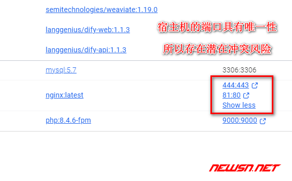 - 安全性问题:暴露端口可能会让外部用户访问容器服务,增加攻击面。
