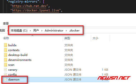 [途径1] Docker CLI的配置文件通常是daemon.json,位置:C:\Users\<User>\.docker\daemon.json。