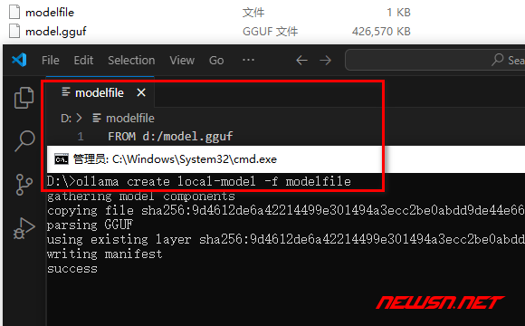 FROM d:\gguf\<gguf>.gguf通过下面的命令,加载对应新模型。