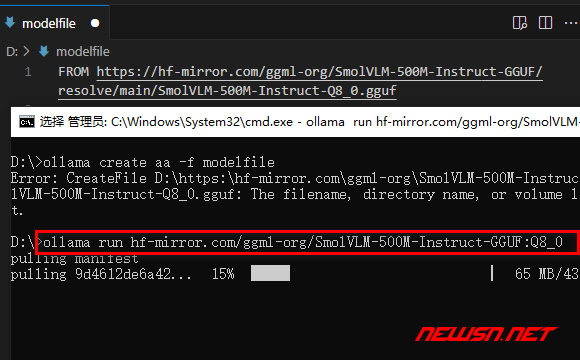 Error: pull model manifest: 400: {"error":"Repository is not GGUF or is not compatible with llama.cpp"}直接传递网络gguf文件地址,是不能运行的。需要下载回来后,采用接下来的modelfile的from方案进行加载。
