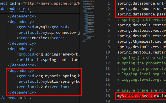 修改pom.xml,添加mybatis-spring-boot-starter,(去除spring-boot-starter-data-jpa)。
